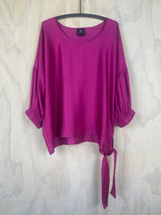 This luxe satin top in striking fuchsia will elevate any outfit! Loose fitting style, could size down. Complete with a stylish side sash, comfortable round neck, and elasticated balloon sleeves. Stand out from the crowd with the Sash Demelza Top!