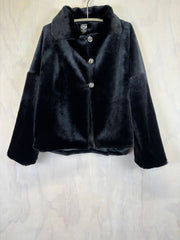 The Vesta Noir Fur Jacket with satin acetate lining with pockets, three loop fastenings and perfect heart buttons. Easy fit for layering tops under or wear over your favourite winter dress. The perfect weekend fun jacket or nightime glamour wear.