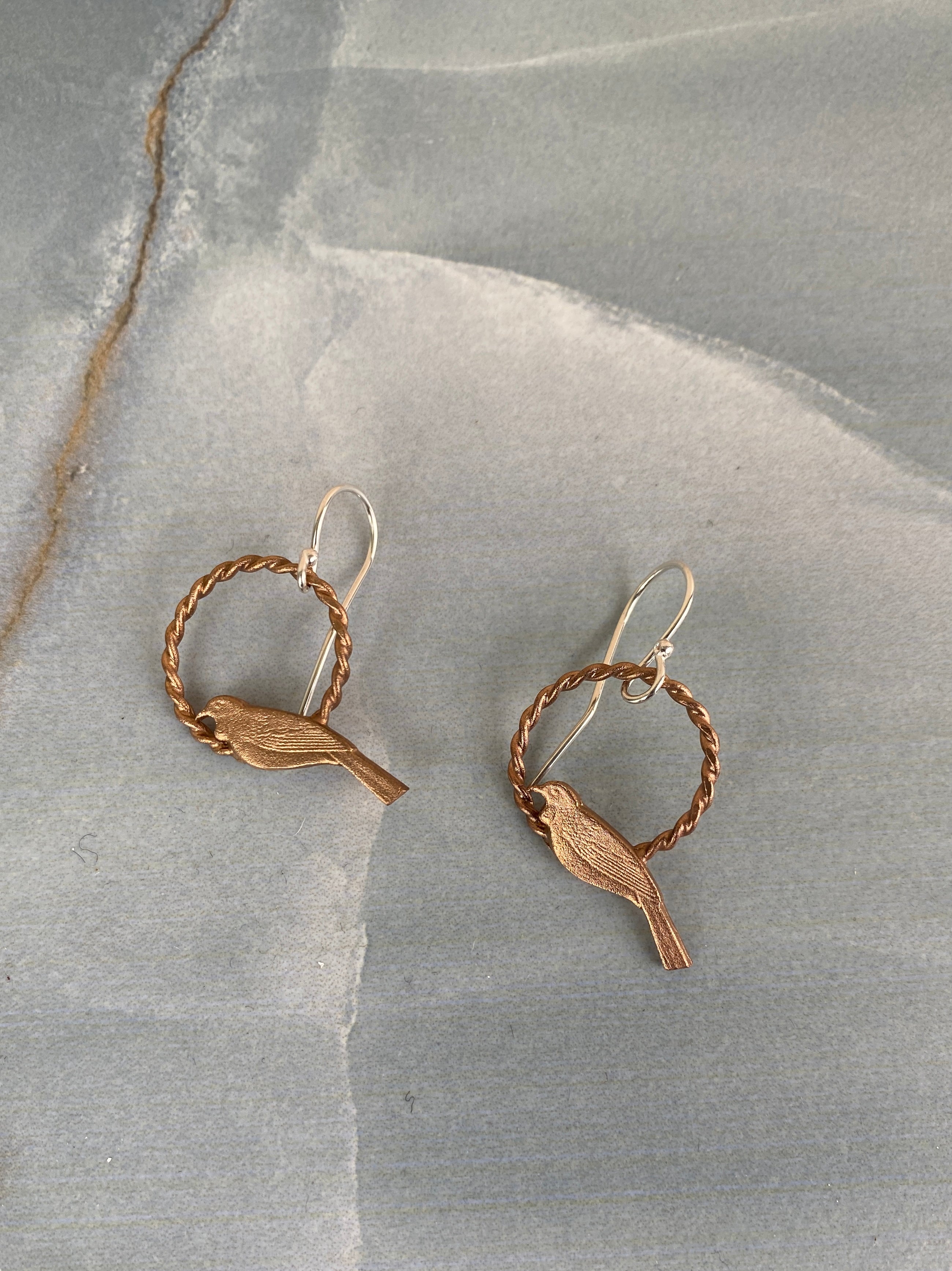 Tui on a hoop earrings in Bronze and sterling silver hooks.