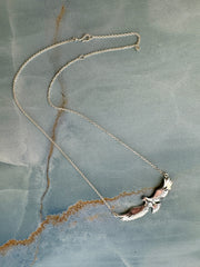 Experience the exciting thrill of flight with this stunning Flying Kea pendant! Expertly crafted by Kim Jobson in Aotearoa, this unique piece features a cleverly cutout Kea on a sterling silver chain. Take off with this one-of-a- piece, secured it with the handmade hook clasp!