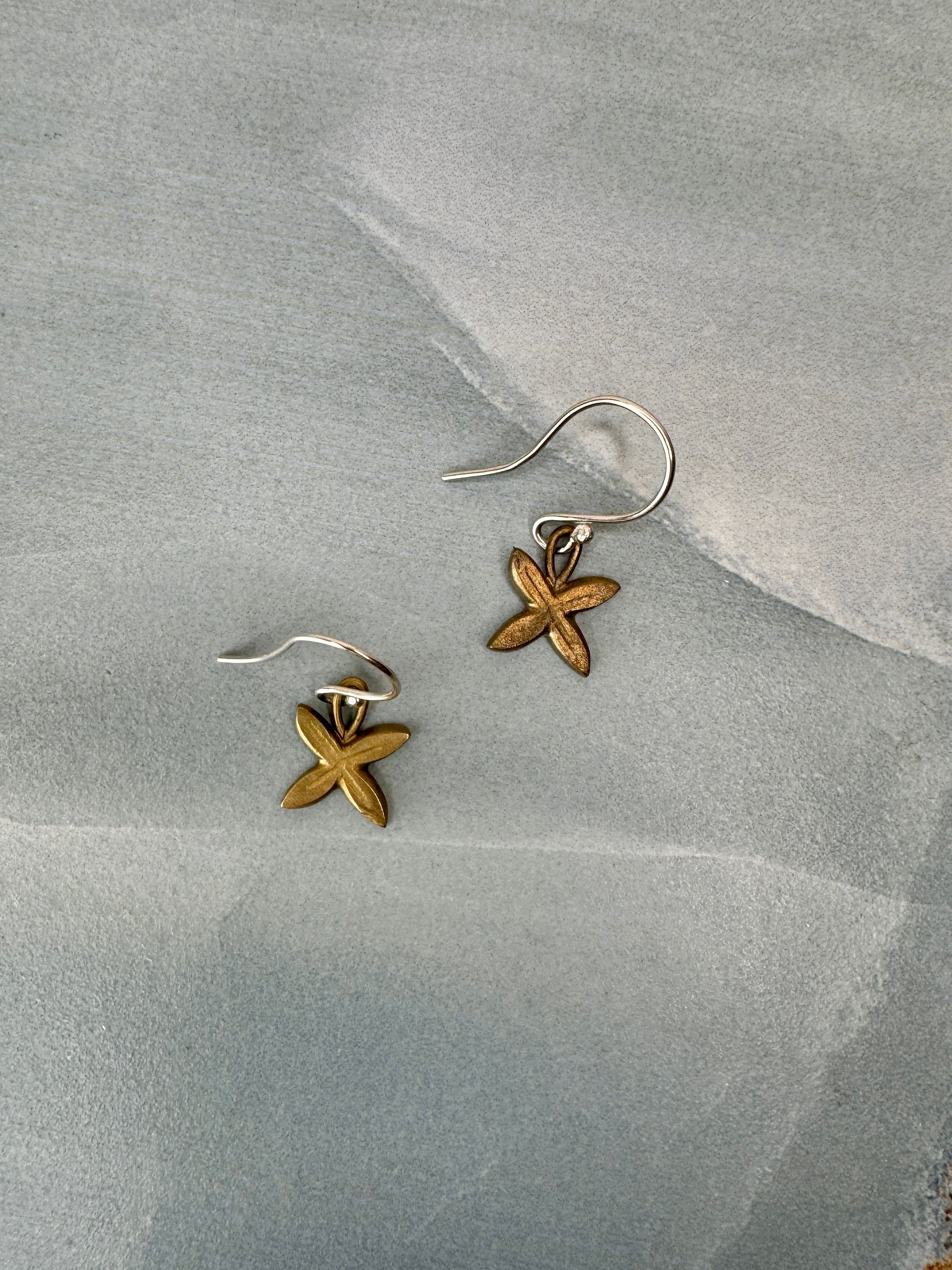 Taken from a much loved traditional tapa symbol of the fragrant frangipani flower, these earrings are a reflection of the influence of Pacific Island culture on the old suburb of Grey Lynn.