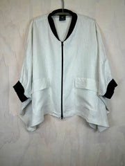 Expertly crafted with a creamy shell colored linen, the Juna Drape Bomber features cargo pockets for convenience, a 2-way zip for versatile styling, and a contrast rib neck and sleeve band for added detail. Available in one size fitting sizes 8-22.