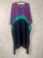 Treat yourself to a fun and flirty dress that takes you from day to night! The classic Juna T Dress is the perfect way to brighten up any day or night of the year. Color blocking with stunning floral prints, and combining soft drapey viscose and silks, this dress will be an eye-catching addition to your wardrobe! Pair it with the Juna Origami Pants, or a slip. It's one-size-fits-most, fitting sizes 8-22.