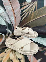 Softest Italian leather in classic proportions with adjustable back strap. Padded sole and woven detailing around base of sole.