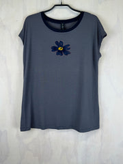 Navy/Grey Stripe with flower motif and contrast striped neck banding.