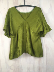 Lovely Vesta Top can be worn each way with a v front or back and/or round neck with floating sleeves finished with soft frill on sleeve .