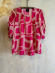 Experience luxury and sophistication with our Juna Ava Top with a colourful candy print. Featuring an elastic gathered neckline and sleeves, its shaped fit is flattering with both skirts and trousers. Thos top is perfect for any occasion.