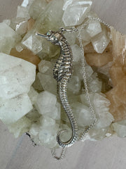 Sterling silver seahorse pendant with paua pearl Eyes.